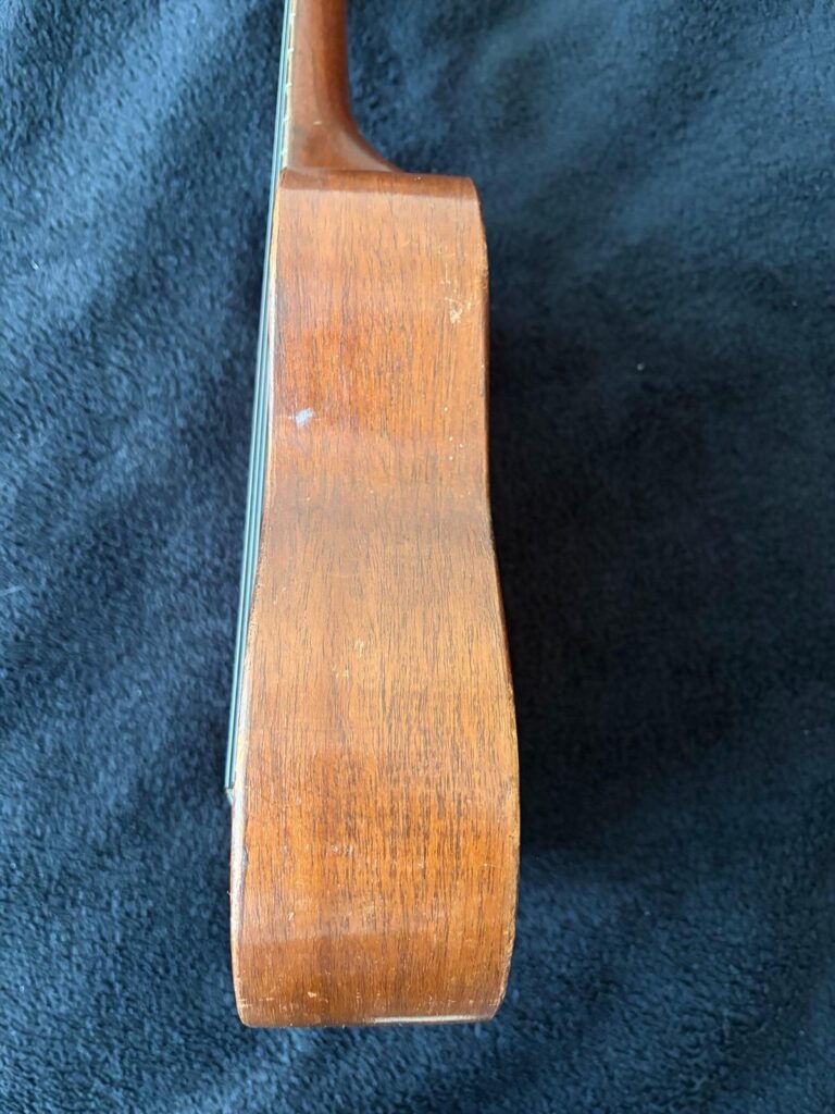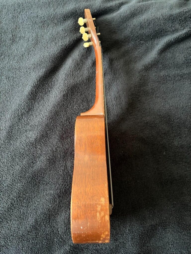 ところが、動画編集をしてみると、なんともラクに(私にしては)いい音を出している! もしかして、このウェブサイト史上もっとも演奏のデキの良い動画では? などと思ってしまいました。ロゴに「The」がついている年代のギブソンウクレレと言えば、知っている人は知っている名作ではあるそうですが……ラクに実力以上にうまく聞こえてしまうウクレレなのか……よほど弾きやすいのか……おそるべし。